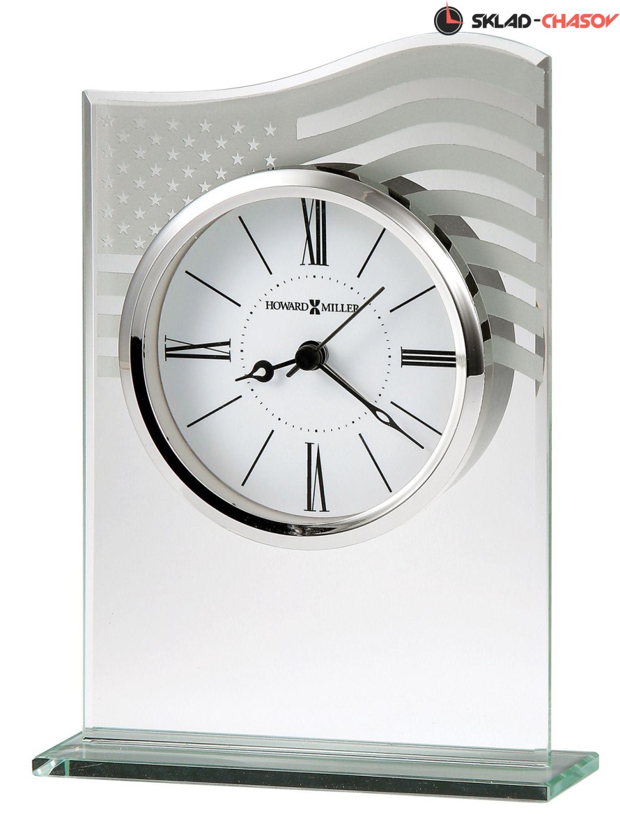 Настольные часы-будильник. Верх стеклянного корпуса сделан в форме равевающегося флага США.