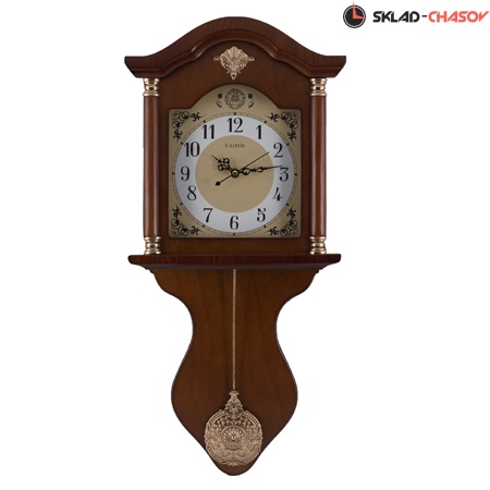 Кварцевые настенные часы с маятником Kairos KR001-1. Украшением часов является рифленый циферблат с декоративными расписными элементами. Фигурные стрелки тоже придают модели изысканность. Часы отлично впишутся в интерьер гостиной. Корпус из дерева (МДФ), украшен металлическими элементами. Ход стрелок — плавный (бесшумный).