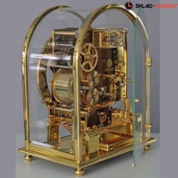 Механические настольные часы Kieninger 1226-01-04 с боем в полированном латунном корпусе, ограненное стекло, закрытый белый циферблат с секундной стрелкой.Завод на 8 дней. Три мелодии (Westminster, St.Michael, Whittington), реальные секунды.Автоматическое ночное отключение мелодии и боя.