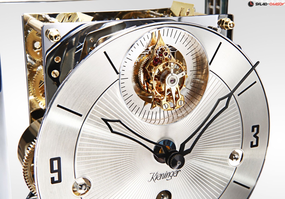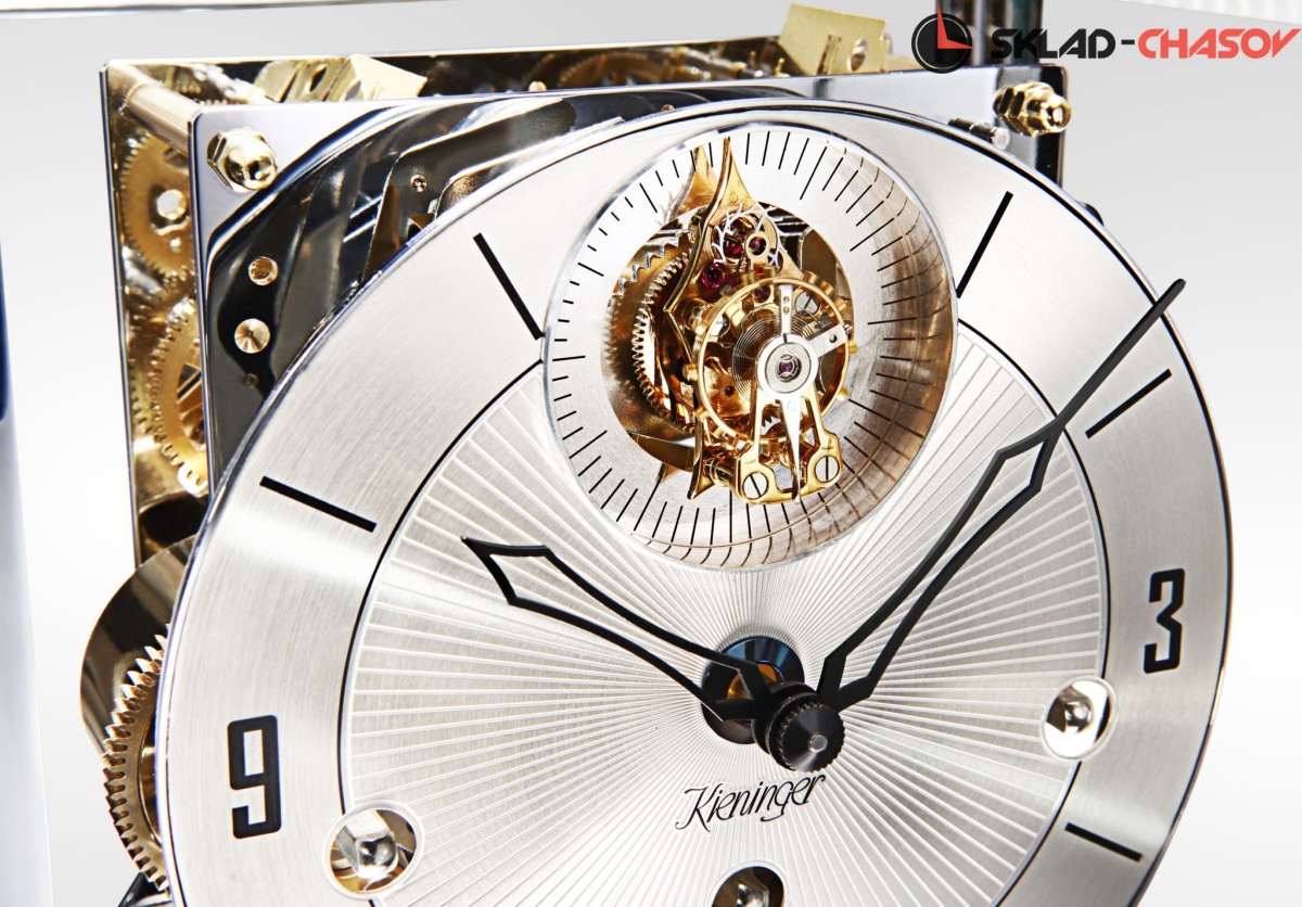 Механические настольные часы Kieninger 1266-96-04 с боем. Механизм с подпитывающей энергией, продолжает работать во время завода часов. Турбийон совершает один оборот в минуту. 8-ми дневный запас хода.Модель оснащена функцией боя, мелодиями Westminster, St. Michael, Whittington. 8-ми стержневой гонг.Автоматическое ночное отключение мелодии и боя с 22:00 до 07:15 (патент Kieninger).Корпус этих великолепных часов изготовлен из массива дерева, покрыт рояльным лаком 5 панелей из минерального стекла со скошенными гранями и обрамлением, две дверцы обеспечивают доступ к механизму.Классический круглый циферблат.Временные рамки обозначены большими арабскими цифрами и визирами (черточками) . Секундный индикатор закреплен на каретке турбийона.