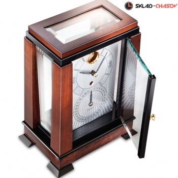 Механические настольные часы Joseph Kieninger 1272-23-01. Часы в классическом корпусе орех, 5 панелей из минерального стекла со скошенными гранями. Мануфактурный механизм со швейцарским анкерным спуском, балансовым колесом. Сквозь прозрачное окошко на циферблате можно наблюдать за работой механизма часов.8-дневный запас хода благодаря двум заводным барабанам. Пружинный завод.Стрелочный индикатор даты.Механизм: механический, калибр NE004. 15 камней. 6 шарикоподшипников. Циферблат в стиле «арт-деко», рисованные цифры.Сквозь апертуру циферблата видны колебания балансового колеса с регулировочными винтами. 5 панелей из минерального стекла со скошенными гранями и латунным обрамлением. 2 дверцы обеспечивают доступ к механизму.Секундная стрелка вынесена на отдельный циферблат.