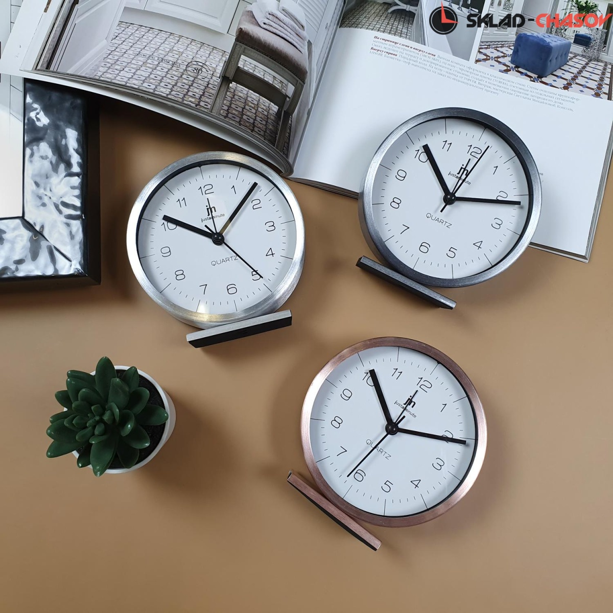 Кварцевый будильник в шлифованном алюминиевом корпусе. Бесшумный механизм с плавным ходом.