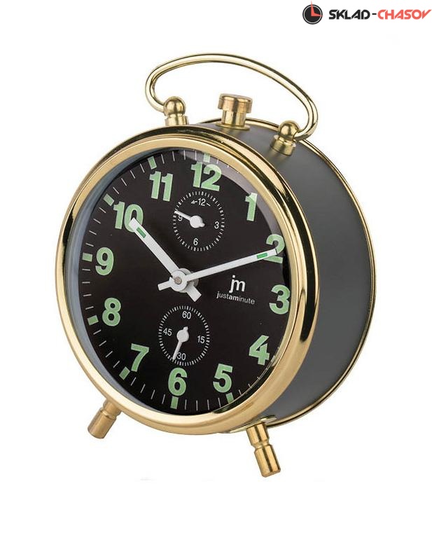 Механический будильник. Металлический корпус. Механический звонок (по колокольчикам). На дополнительные циферблаты вынесена секундная стрелка, а также стрелки будильника