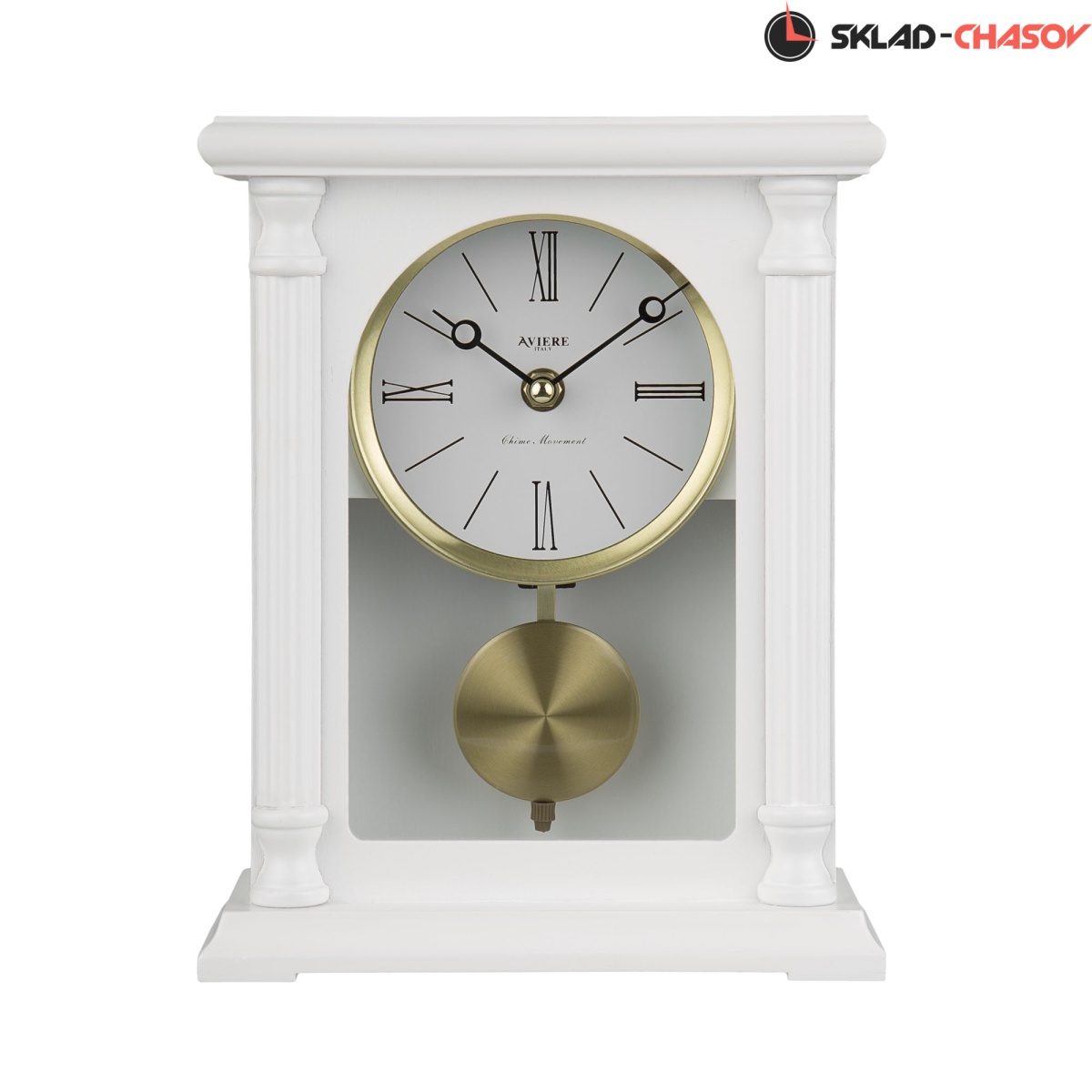 Корпус часов выполнен из МДФ и покрыт шпоном твердых пород дерева и тонирован в белом цвете.