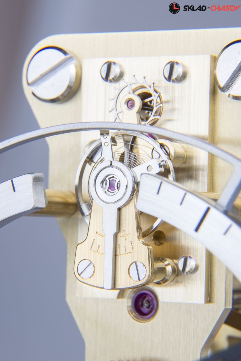 Теллур показывает оборот Земли вокруг Солнца один раз в год, при этом Земля совершает оборот вокруг самой себя каждые 24 часа. В то же время Луна обращается вокруг Земли один раз в 29 с половиной дней, поворачиваясь один раз вокруг своей оси, так что с земли можно наблюдать отдельные фазы Луны. Земля проходит через 12 знаков Зодиака, месяцы и дни, которые можно прочитать на плоском циферблате. 8-дневный Вестминстерский ударный механизм 4/4 на четырех полированных колокольчиках. Секундный ход, пружинный балансир, швейцарское ювелирное изделие с 11 камнями, полированные пластины, автоматическое отключение ударного механизма на ночь. Фрезерованные изображения 12 знаков Зодиака на ажурной полированной круглой розетке. Календарь с фрезерованным изображением месяца и дня. Теллуриевый вращающийся кронштейн со стрелками и изображением солнца, Луны и земли. Автоматическое отключение на ночь, мелодия, фаза луны. 29 x 35 cm