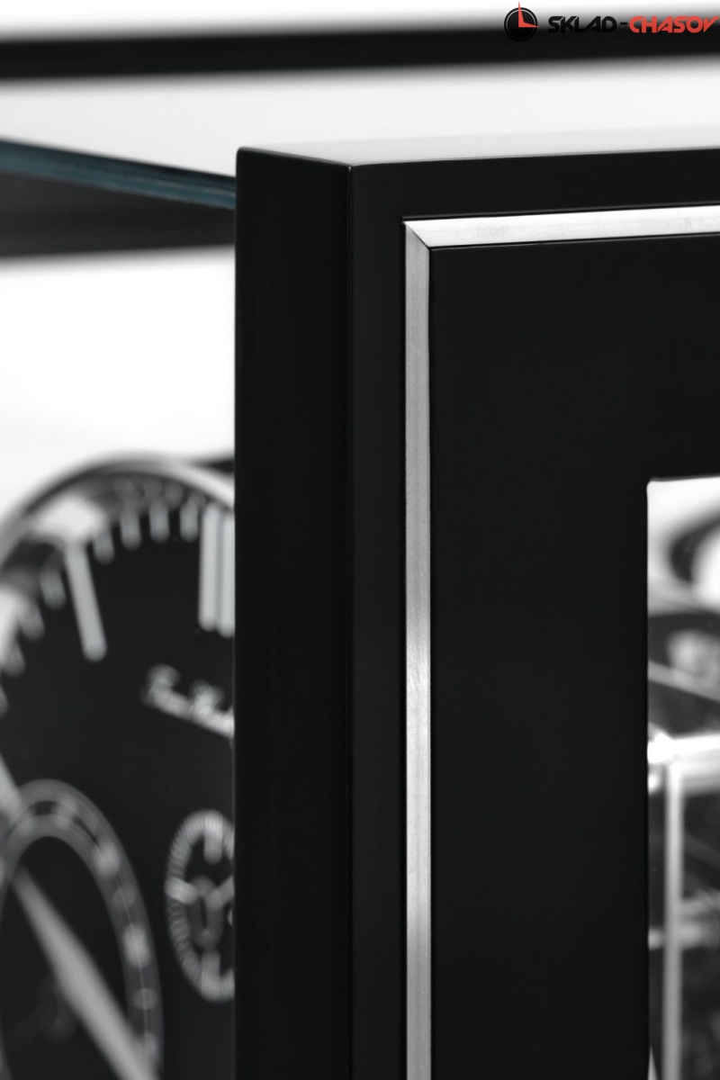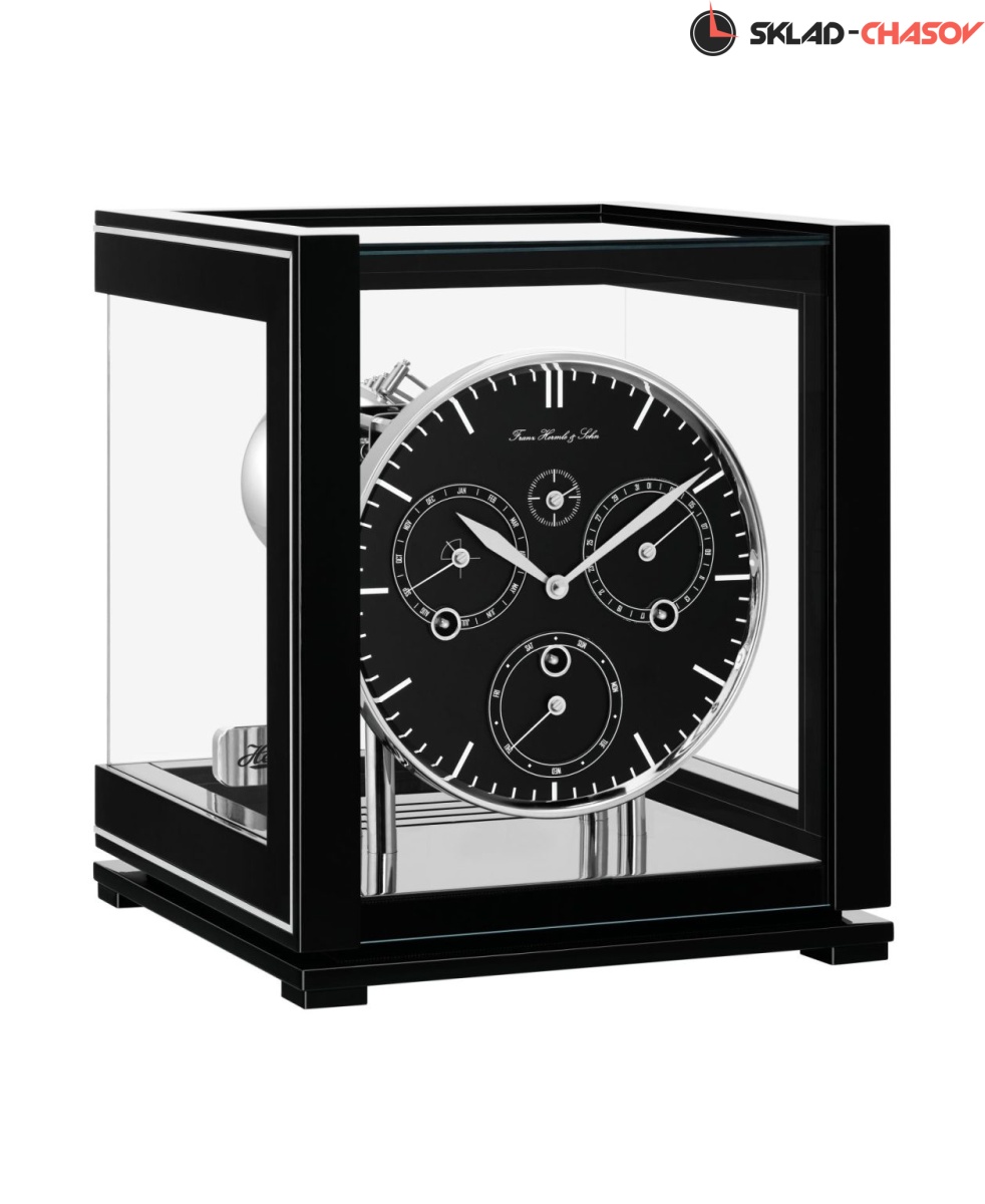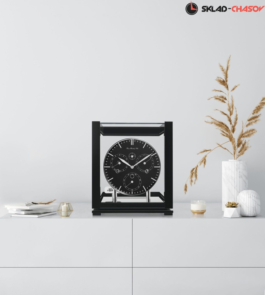 Новый вечный календарь оснащен отполированным до блеска вестминстерским механизмом W0352, который необходимо заводить каждые восемь дней. Этот Вестминстерский ударный механизм отбивает каждые 15 минут, количество часов указано в часах, и при необходимости может быть отключен на ночь благодаря автоматическому ночному отключению (последний удар в 21:45, следующий в 7:00). Ненавязчивый звук колокольчиков создаст в вашем доме приятную атмосферу уюта. Новая заводная клавиша вечного календаря покрыта хромированным лаком и искусно утоплена за механическим механизмом. Механизм хорошо виден со всех сторон благодаря антибликовому стеклу на передней панели. Еще одной изюминкой этих часов является куб, который необходимо снять с верхней части, чтобы завести механизм. Стрелки на белом циферблате окрашены в синий цвет вручную.
