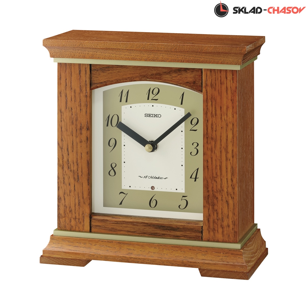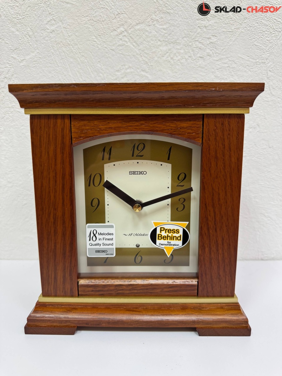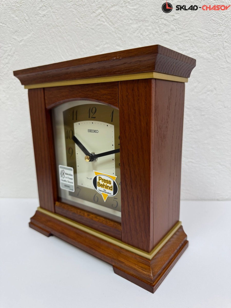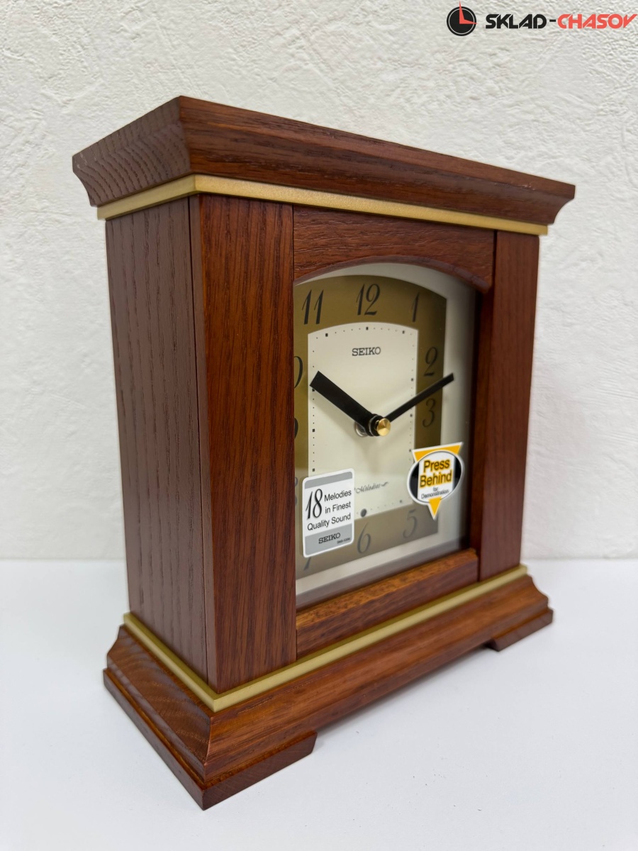 Коричневые кварцевые настольные часы с аналоговым циферблатом (стрелки). Стрелки: черная часовая, черная минутная. Циферблат Бежевый с арабскими цифрами. Одна из 18 Hi Fi мелодий каждый час (The Four Seasons "Весна", Kanon, "Кляйне Нахтмузык", Симфония №6 "Пастораль", "Утро из оперы "Пер Гюнт", "Травиата" "Застольная песня", Удивительная грация Планеты "Юпитер", Вальс цветов, Приветствие любви, Картины с выставки "Променад", Танец тростниковых дудочек, Украсьте залы, О Танненбаум, Мы желаем Вам Веселого Рождества, Радости Миру, Тихой ночи, Звенят Колокольчики). Регулятор громкости и датчик освещенности (отключают воспроизведение мелодий в темноте). Корпус выполнен из дерева. Бесшумный механизм.