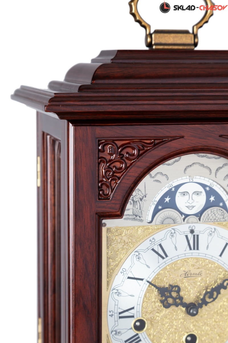 Чеканный латунный циферблат украшен стилизованным лунным календарем.