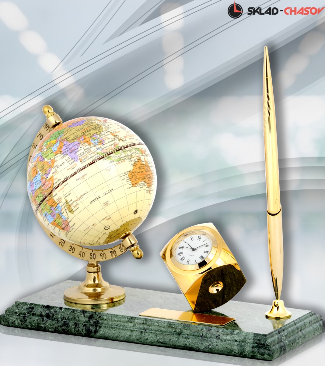 Основание настольного прибора (Ширина 90 мм; Длинна 230 мм; Высота 18 мм) - натуральный камень (мрамор).