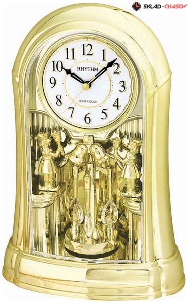 Часы настольные музыкальные. Почасовая мелодия. Вращающийся маятник. Регулятор громкости. Цвет - золотой. Материал - пластик. Элемент питания: ААх2, Сх1шт. (входят в комплект).