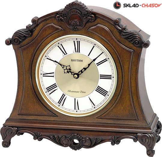 Настольные часы музыкальные. 11 мелодий. Выключение мелодий в ночное время. Регулятор громкости. Размер 34,5х32,5х12,8см. Вес 2,93кг. Цвет - коричневый. Материал - натуральное дерево. Элемент питания - Сх2шт. (входят в комплект).