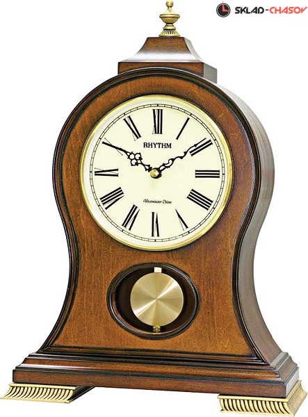 Настольные часы музыкальные с маятником. 4 мелодии. Выключение мелодий в ночное время. Регулятор громкости. Размер 28.6х40.3х13.1см. Вес 2.26кг. Цвет - коричневый. Материал - натуральное дерево. Элемент питания - Сх2шт. (входят в комплект).