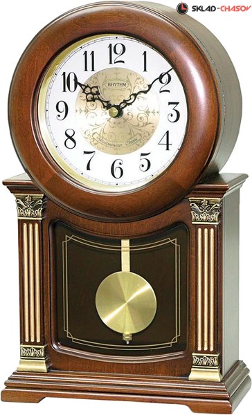 Настольные часы с маятником .11 мелодий. Автоматическое выключение мелодий в ночное время. Регулятор громкости. Цвет - коричневый Материал - натуральное дерево. Элемент питания - Сх2шт. (входят в комплект).