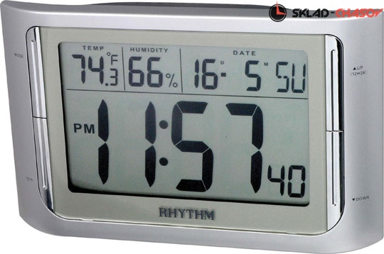 Часы настольные. Будильник. Календарь. Термометр. Гидрометр. Дни недели на 5-ти языках Тип сигнала - импульсный. Повтор сигнала будильника. 12-24 режим. LED подсветка. Размер 18,6 х 11,5 х 5.0 см. Вес 305 гр. Цвет корпуса -серый . Материал - пластик. Элемент питания - АА х 3=2 (входит в комплект).
