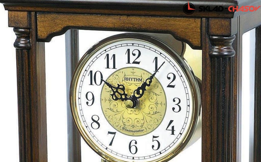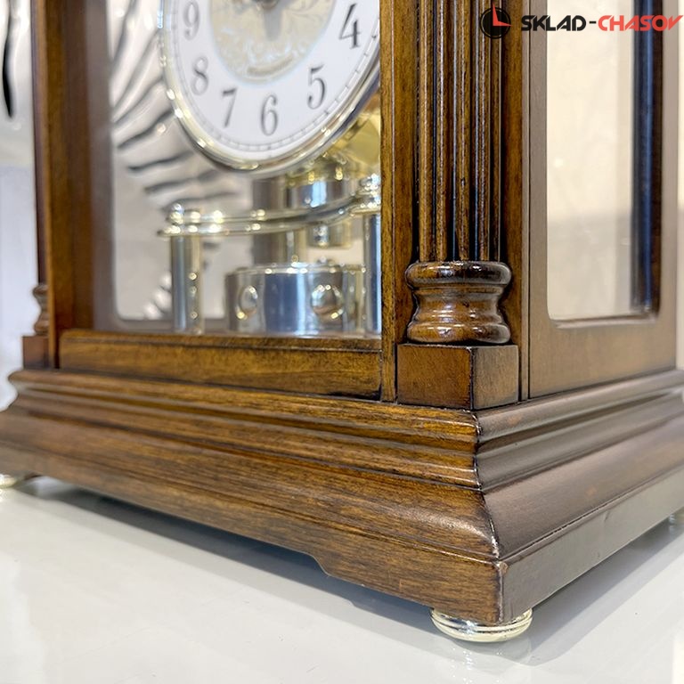 Настольные часы с мелодией и боем курантов, в деревянном корпусе.