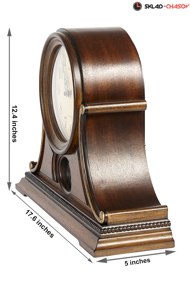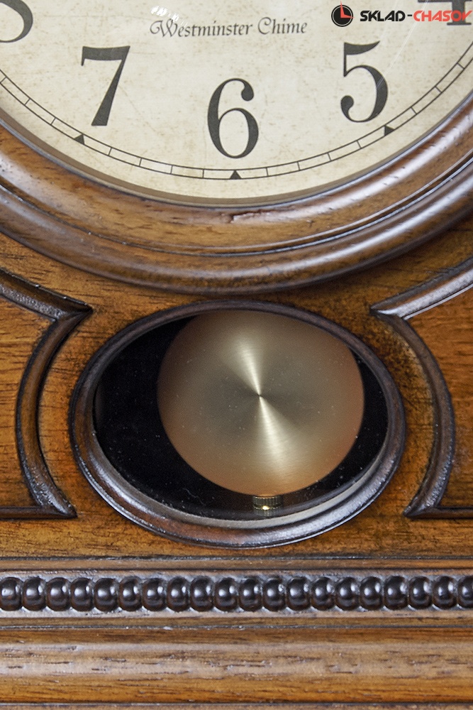 Автоматическое выключение мелодий в ночное время с 11:00 до 5:45. Регулятор громкости. Лазерная резка циферблата. Размер 44,8 х 31.4 х 13.6см. Вес 2400г. Цвет - коричневый. Материал - дерево Элемент питания - Сх2 (входит в комплект)."