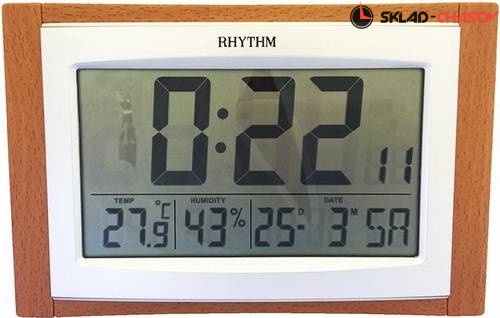 Электронные, настольно - настенные часы - будильник.LCD термометр, календарь, гигрометр.Часы имеют 12/24 - х часовой формат отображения времени.Выбор одного из 5 языков для отображения дня недели.Часы имеют кварцевый механизм с точностью хода +-30с /мес. Корпус: пластик/коричневый,серебристый.Циферблат: арабские цифры.Звонок: бипер (Beep alarm), повтор срабатывания будильника через 5 мин.