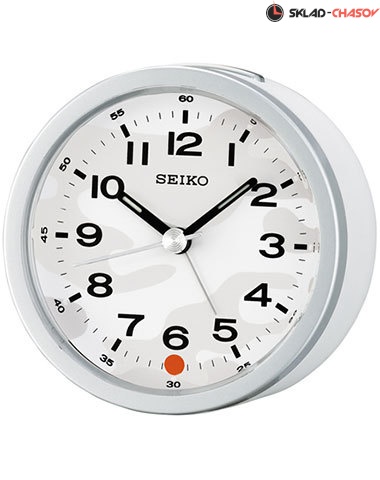 SEIKO QHE096TN – настольные часы-будильник с точным и надежным кварцевым механизмом. Оснащены функцией повторного сигнала будильника (Snooze). Будильник включается поворотом безеля, подсветка, функция «еще поспать». Корпус выполнен из качественного пластика бело-серого цвета – этот материал прослужит Вам долгие годы и сохранит свой первоначальный вид. Круглый циферблат белого цвета, временные рамки обозначены большими арабскими цифрами и визирами (насечками) черного цвета – Вы легко определите текущее время. Часовая, минутная, секундная стрелки и стрелка будильника.