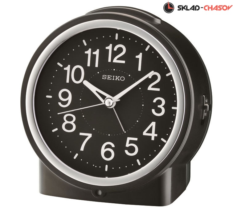 SEIKO QHEСтекло7K – настольные часы-будильник с точным и надежным кварцевым механизмом. Плавный ход секундной стрелки. Батарейки: 3 шт. АА в комплекте. Будильник оборудован функцией повтора сигнала, подсветкой. Корпус выполнен из качественного пластика черного цвета – этот материал прослужит Вам долгие годы и сохранит свой первоначальный вид. Круглый циферблат черного цвета, временные рамки обозначены большими арабскими цифрами и визирами (черточками) белого цвета – Вы легко определите текущее время. Часовая, минутная, секундная стрелки и стрелка будильника.