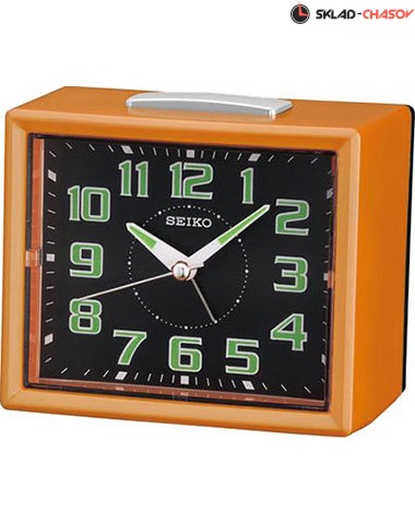 Настольные кварцевые часы. Материал пластик. Будильник. Функция повтора сигнала будильника (Snoоze). Люминесцентные стрелки и метки. Цвет оранжевый.