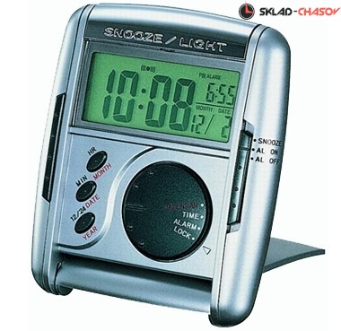 Настольные часы. Будильник. Календарь: число, месяц, год, день недели. Подсветка циферблата. Материал - пластик.