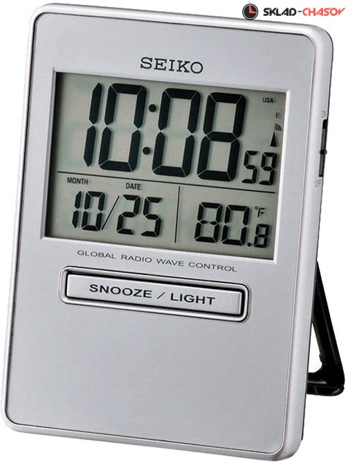 Настольные часы. Будильник. Термометр. Календарь: число, месяц. Подсветка циферблата. Материал - пластик.