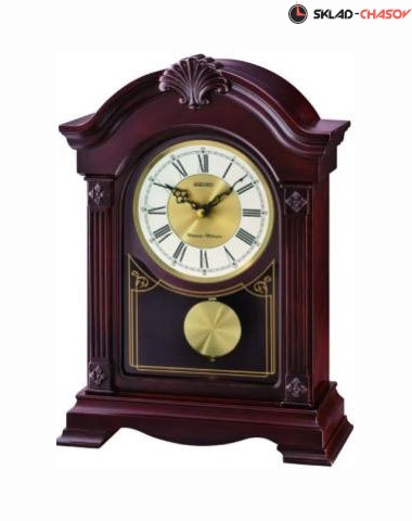 SEIKO QXQ023BN - настольные часы с кварцевым механизмом, который отличается точностью, надежностью, не боится ударов и не требует подзавода. Маятник. Корпус выполнен из качественного дерева (ольха, МДФ, шпон клёна) - этот материал прослужит Вам долгие годы и сохранит свой первоначальный вид. Классический белый циферблат с золотистой вставкой, обрамлен золотистым ободом, часовая и минутная стрелки. Временные рамки обозначены большими римскими цифрами - Вы с легкостью определите текущее время. Настольные часы SEIKO отлично впишутся в Ваш интерьер.