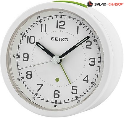 Кварцевый будильник, корпус сделан из пластика, цвет белый, плавный ход секундной стрелки, подстветка, установка будильника - поворотом безеля, функция "еще поспать" , размер 8.5 х 8.5 х 4.5 см, батарейки:1 шт. АА в комплекте