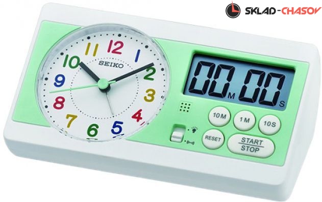 Настольные кварцевые часы. Часы, минуты, секунды, секундомер, таймер. Будильник. Подсветка. Корпус выполнен из пластика. Размеры корпуса 16 см х 6 см, толщина 8.9 см