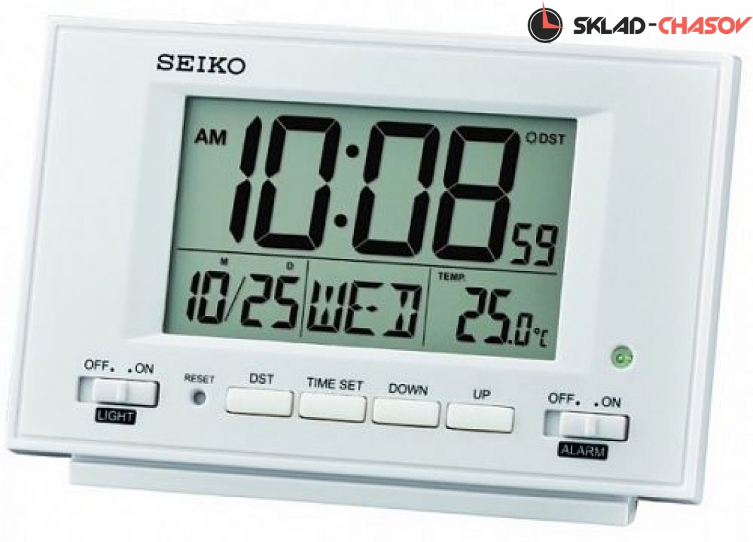Настольные кварцевые, цифровые часы-будильник брендовой марки SEIKO. Корпус часов изготовлен из пластика. Модель оснащена календарем и термометром.