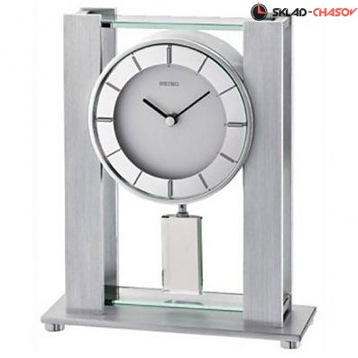 Кварцевые настольные часы с маятником, размер 24.8х 25 х 7 см,алюминиевый/ стеклянный корпус, батарейки 1 шт АА в комплекте