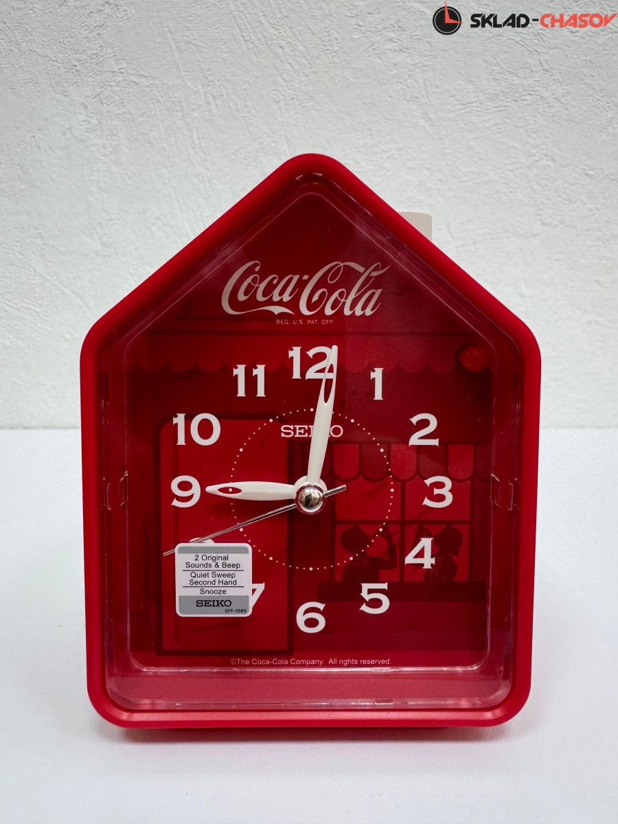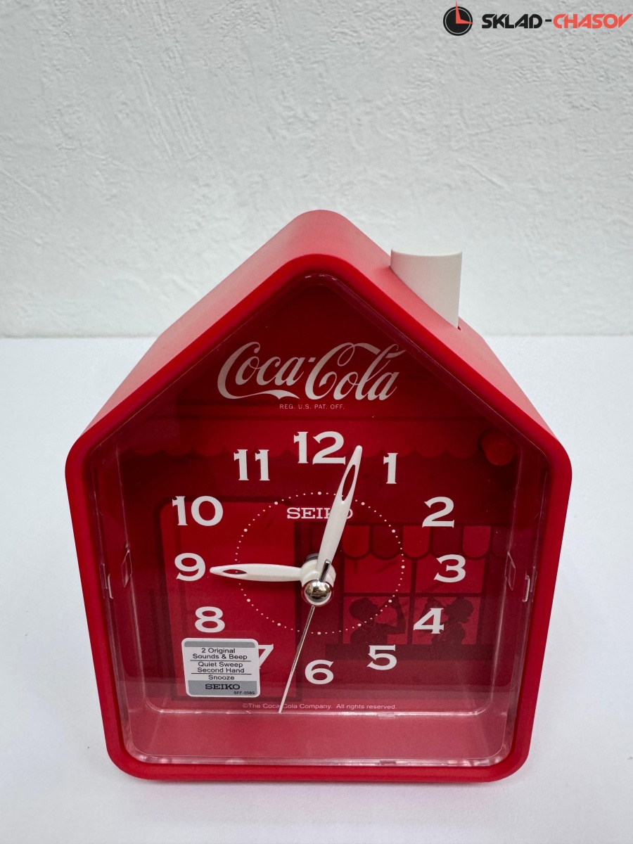 Настольные часы-будильник Seiko QHP902R. Серия CocaCola. Будильник: 2 оригинальных звука /звукового сигнала, повтор, функция автоматической остановки будильника (5 минут), Регулятор громкости, подсветка, секундная стрелка с бесшумным ходом.