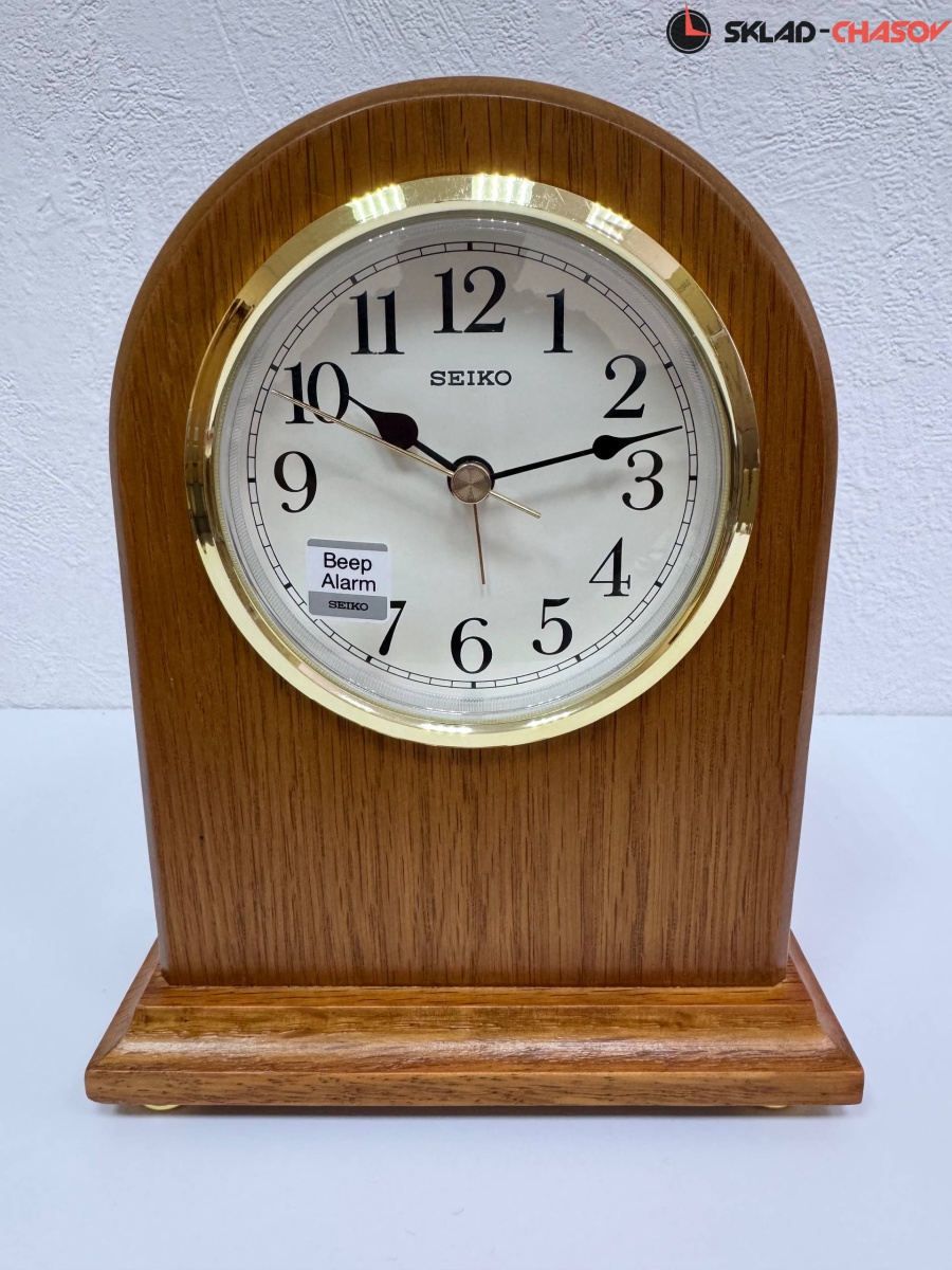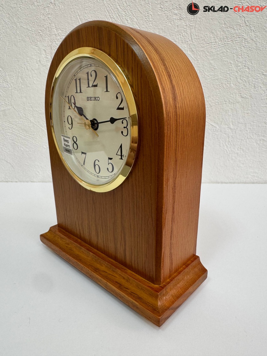 Настольные часы Seiko с функцией будильника в корпусе из массива Дуба и покрыт лаком. Классический циферблат закрыт прочным минеральным стеклом, устойчивое к царапинам.