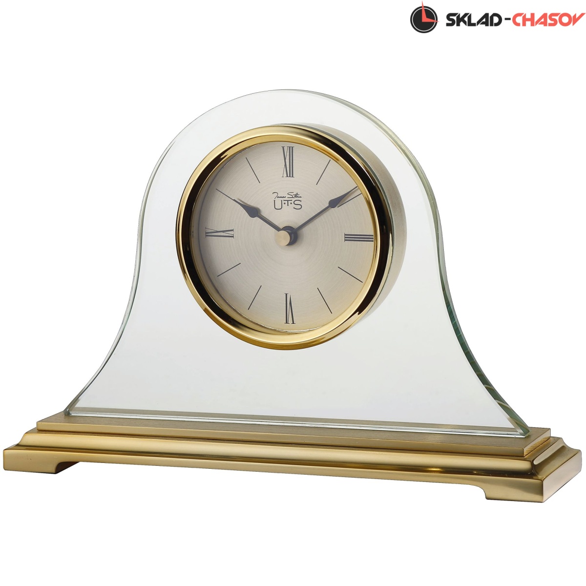Кварцевые настольные часы. Корпус из стекла и металла. Циферблат закрыт стеклом. На основание часов наклеены фетровые накладки для сохранности поверхности, на которой Вы планируете разместить часы. Питание от одной батарейки типа АА (Входит в поставку).