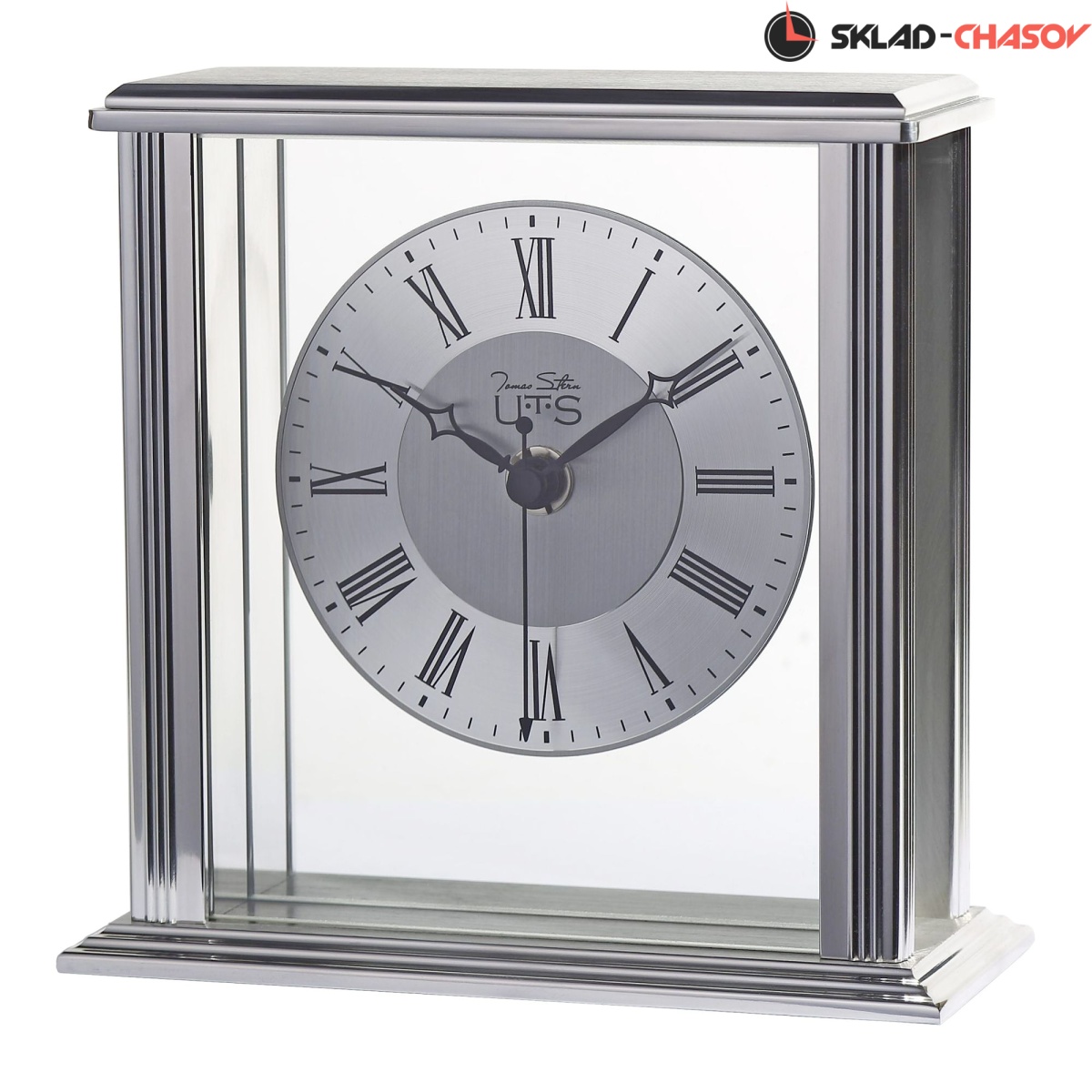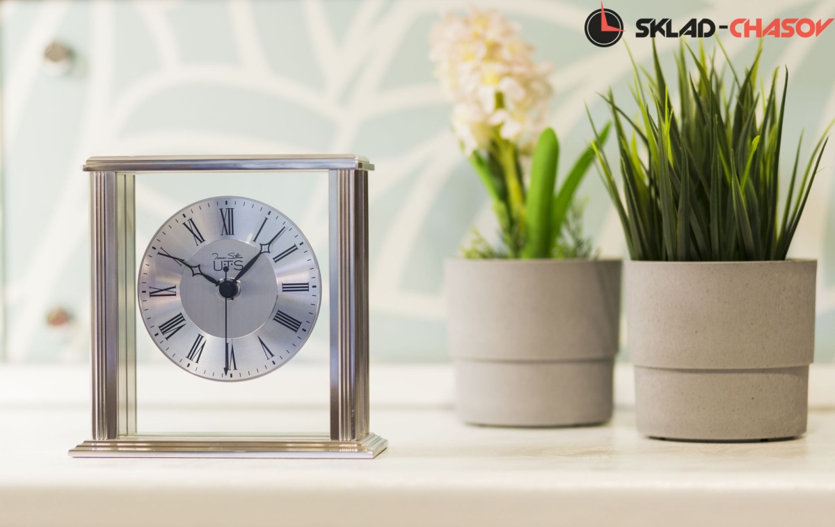 Кварцевые настольные часы. Корпус из стекла и металла. Циферблат закрыт стеклом. На основание часов наклеены фетровые накладки для сохранности поверхности, на которой Вы планируете разместить часы. Питание от одной батарейки типа АА (Входит в поставку).