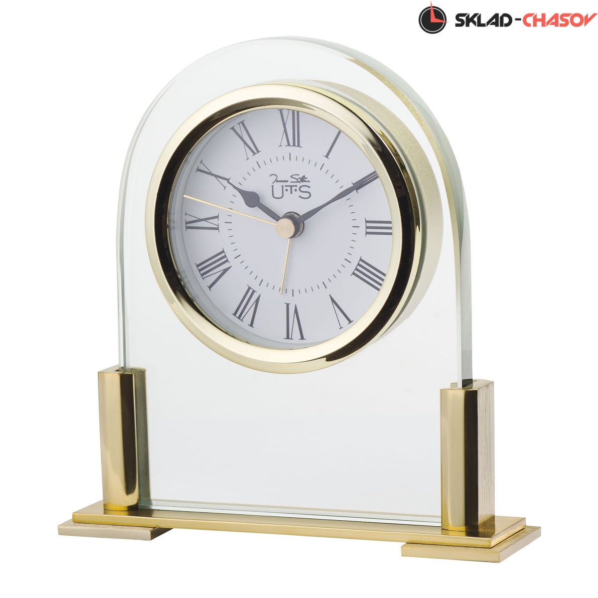 Кварцевые настольные часы с будильником. Корпус из стекла, металлическое основание. Циферблат закрыт стеклом. На основание часов наклеены фетровые накладки для сохранности поверхности, на которой Вы планируете разместить часы. Питание от одной батарейки типа ААА (Входит в поставку).
