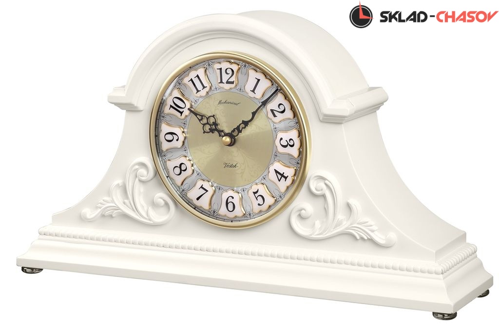 Корпус настольных механических часов МТ-2279-НС с семисуточным заводом изготовлен из ольхи и покрыт лаком цвета "слоновой кости".