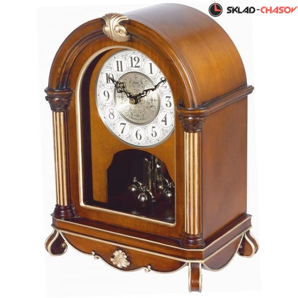 Корпус этих часов выполнен из дерева (темный орех) – этот материал прослужит Вам долгие годы и сохранит свой первоначальный вид.