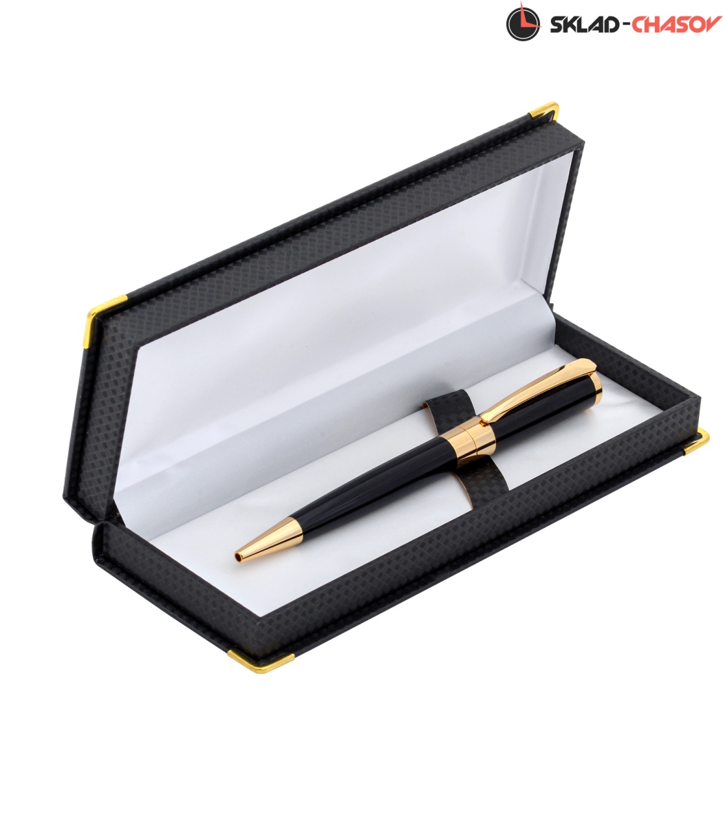 Корпус ручки черный лаковый с металлическими элементами, покрытыми золотом методом ионно-плазменного напыления.