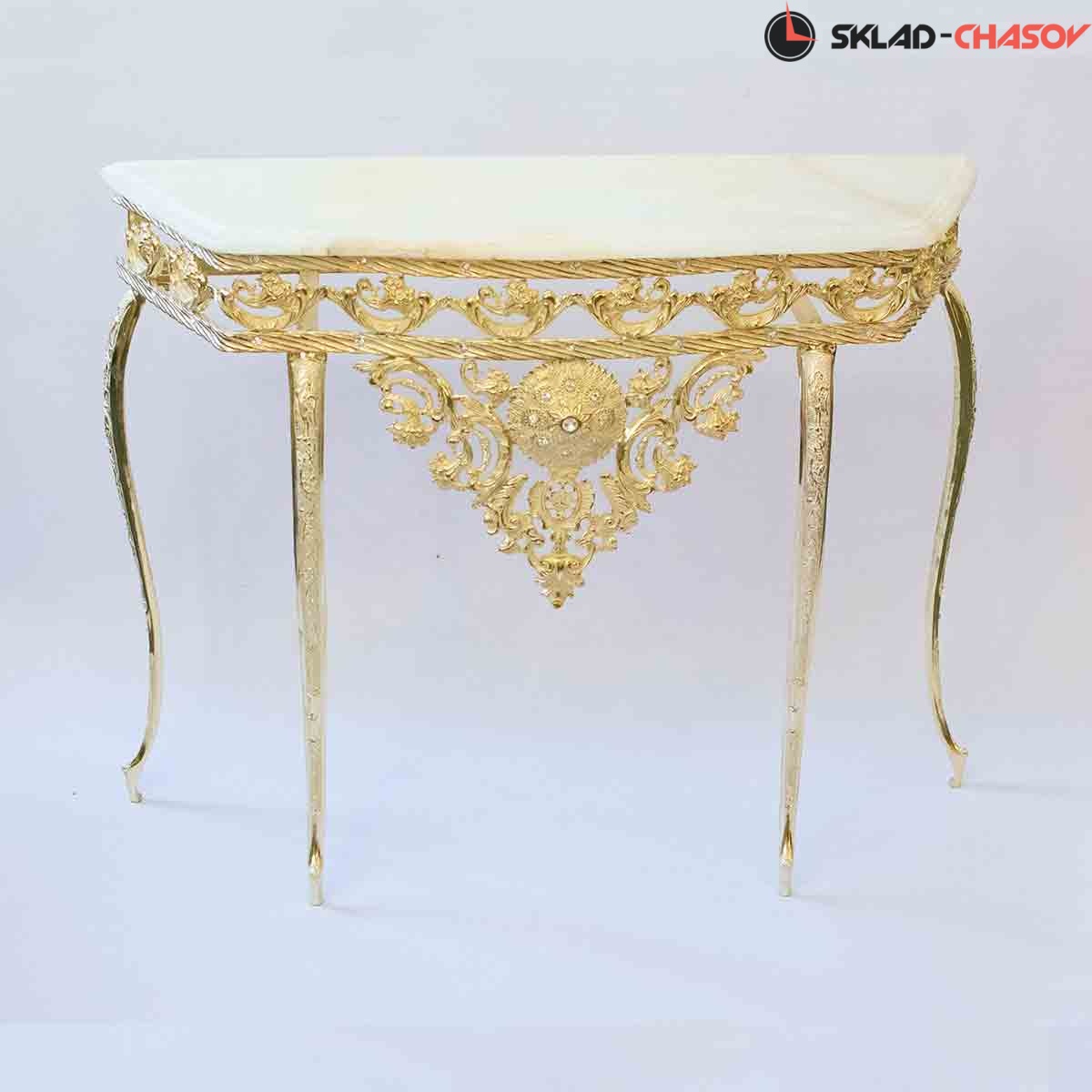 Бронзовая консоль RB YBC1014 идеально дополнит помещение. Вы можете установить его как самостоятельное украшение интерьера или место для размещения вазы, статуэтки и других милых сердцу предметов. Ширина модели составляет 900 мм, высота — 760 мм. Отступ от стены равен 300 мм. Такая модель не занимает много места, но становится ярким акцентом в помещении. Материал корпуса — Бронза, что делает изделие долговечным. Готовая конструкция прослужит много лет. Ее покрытие — white_enamel_gp — сохранится в течение всего срока эксплуатации. За счет элегантного дизайна столик гармонично вписывается во многие стили. При этом вы сможете сочетать его с другими предметами интерьера. Бренд представленной модели — Real Bronze. Страна производства — Иран. Вес стола составляет не указано кг.