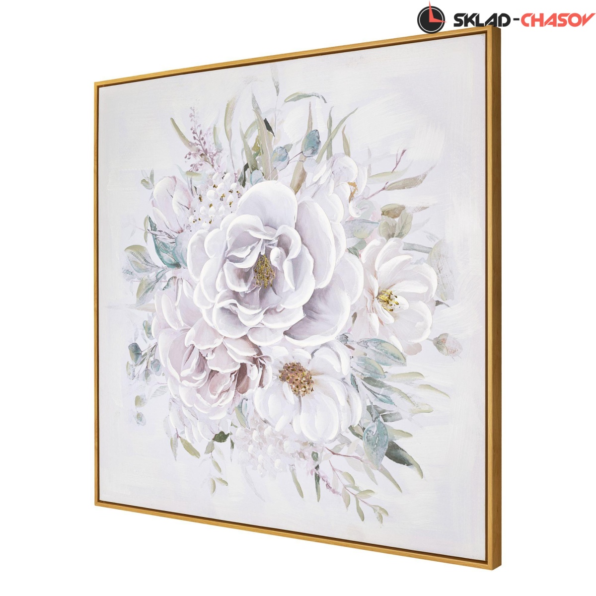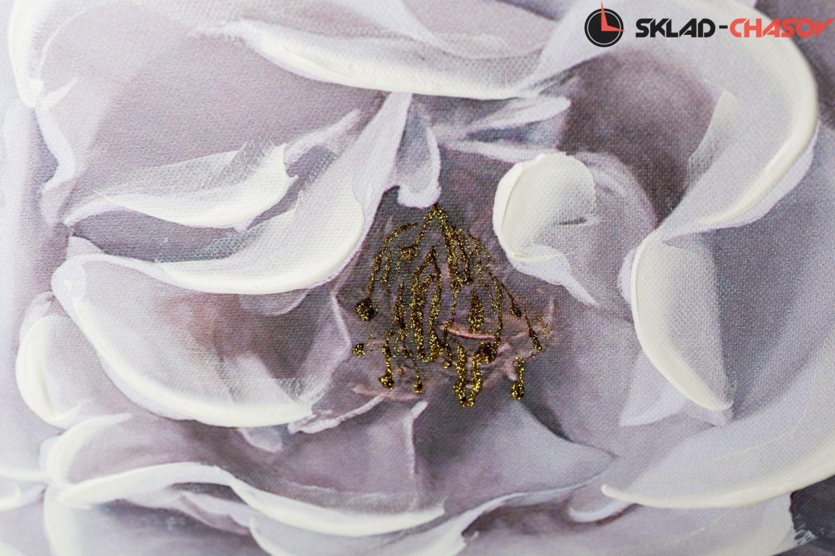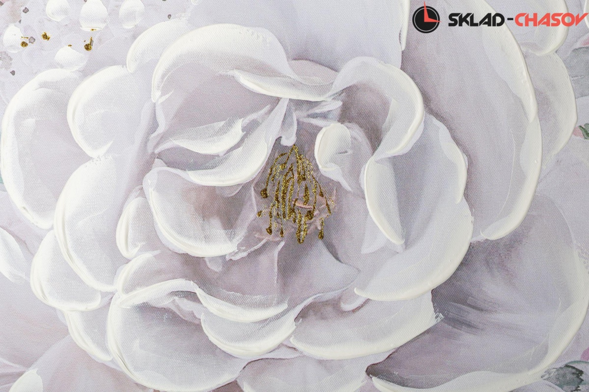 Картина выполнена путем нанесения на холст декоративной шпатлевки и глиттера.