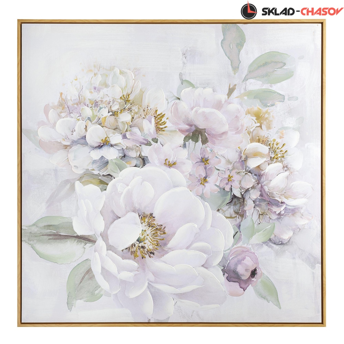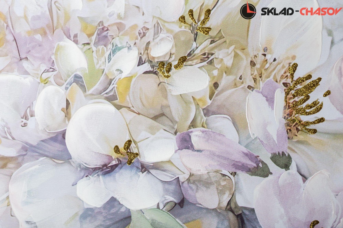 Фактурная картина в нежных, пастельных тонах с цветочными мотивами.