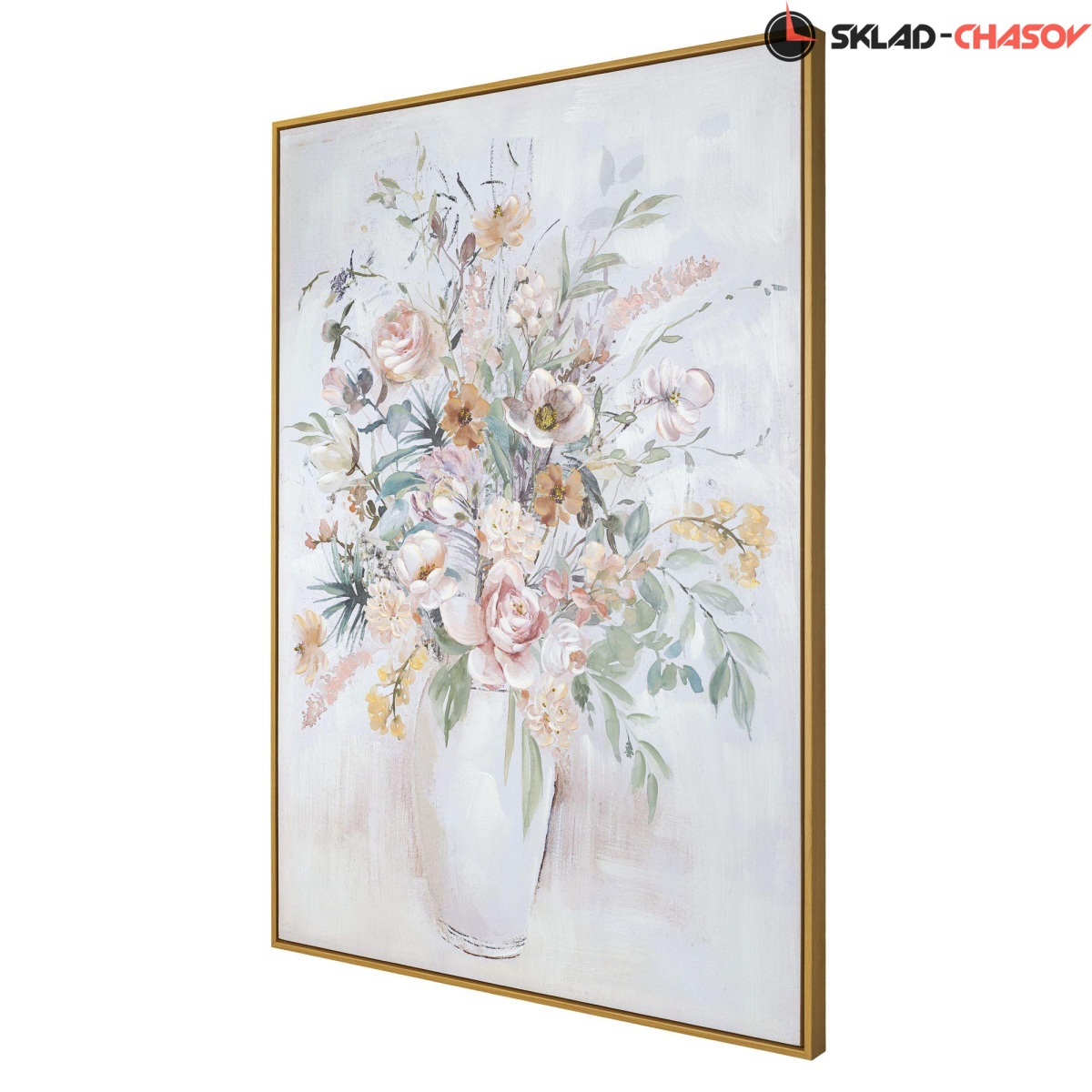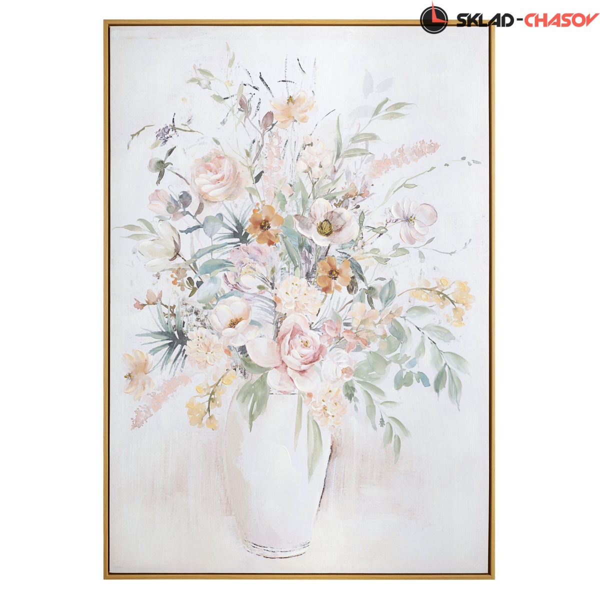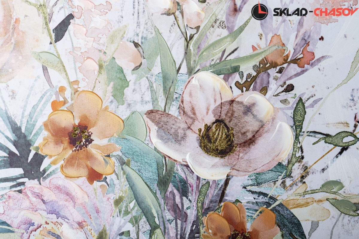 Фактурная картина в нежных, пастельных тонах с цветочными мотивами.