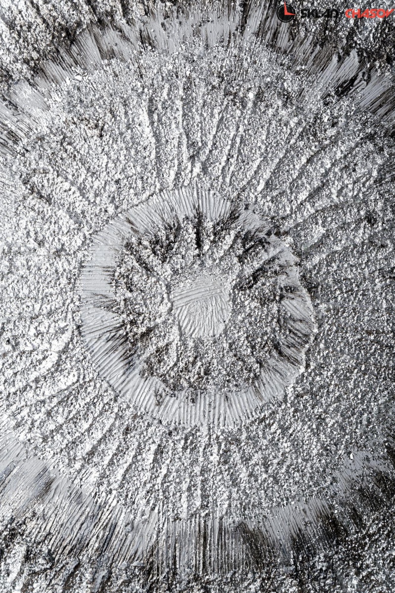 Картина выполнена путем нанесения на холст декоративной шпатлевки, камней и серебристого глиттера.