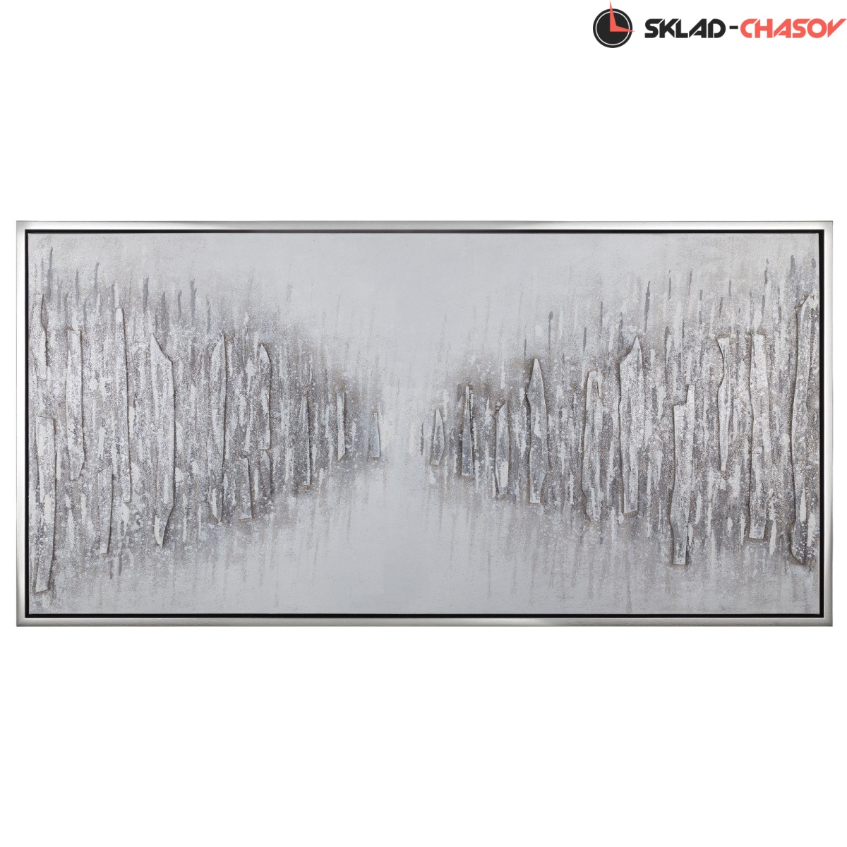 Картина выполнена путем нанесения на холст декоративной шпатлевки и серебристого глиттера.
