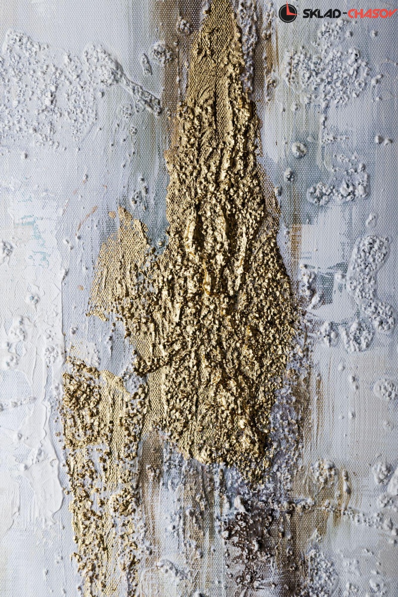Картина расписана вручную. Объемные элементы выполнены из декоративной шпатлевки, камней и золотистого глиттера.