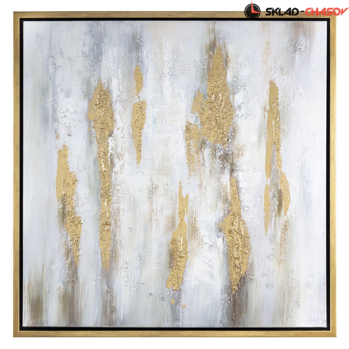 Подрамник выполнен из массива дерева, объемная пластиковая рама золотого цвета. Возможно горизонтальное или вертикальное размещение