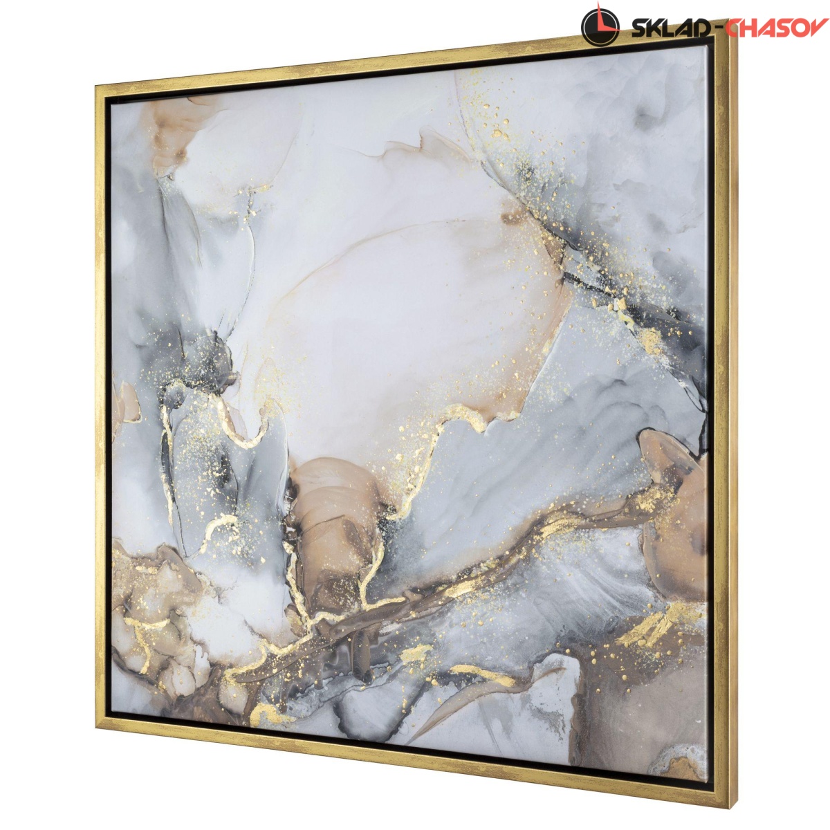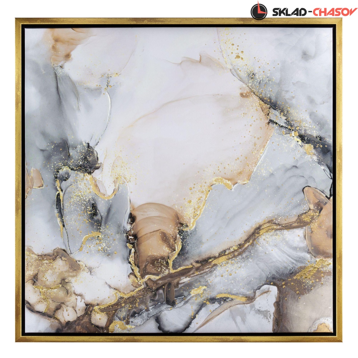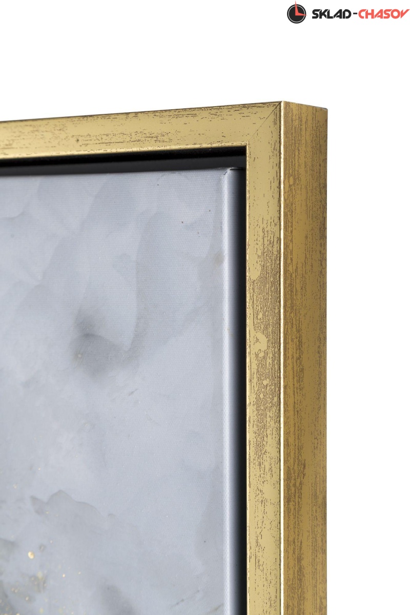 Подрамник выполнен из массива дерева, объемная пластиковая рама золотого цвета. Возможно горизонтальное или вертикальное размещение