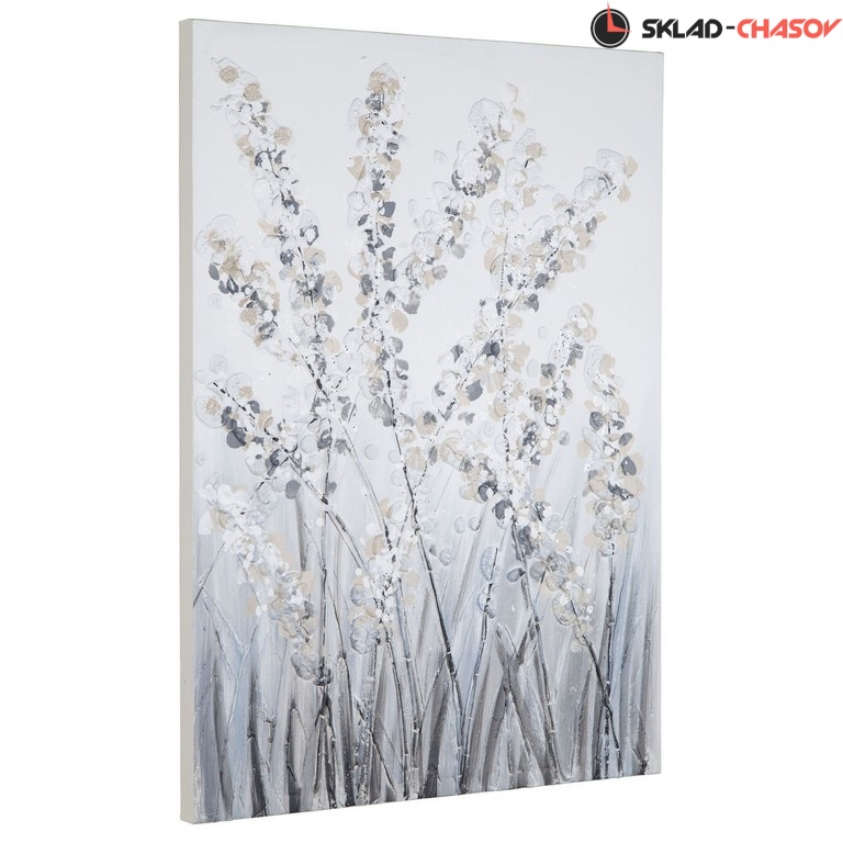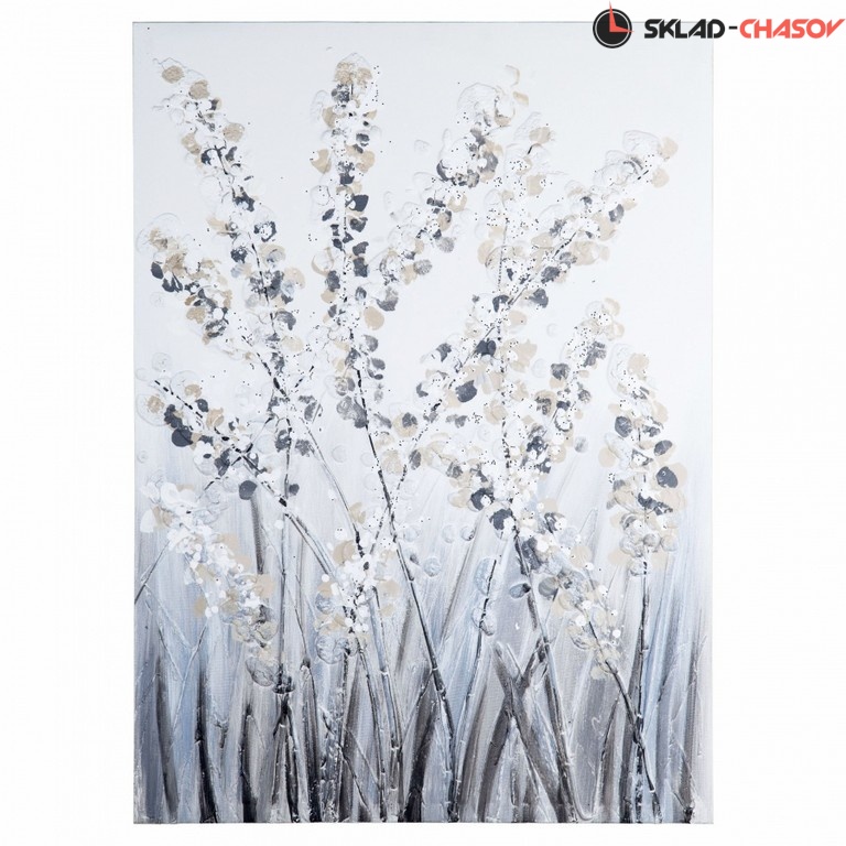 Фактурная картина в нежных пастельных тонах с цветочными мотивами. Картина выполнена путем нанесения на холст декоративной шпатлевки и блесток. Размеры 50 x 70 x 3 см