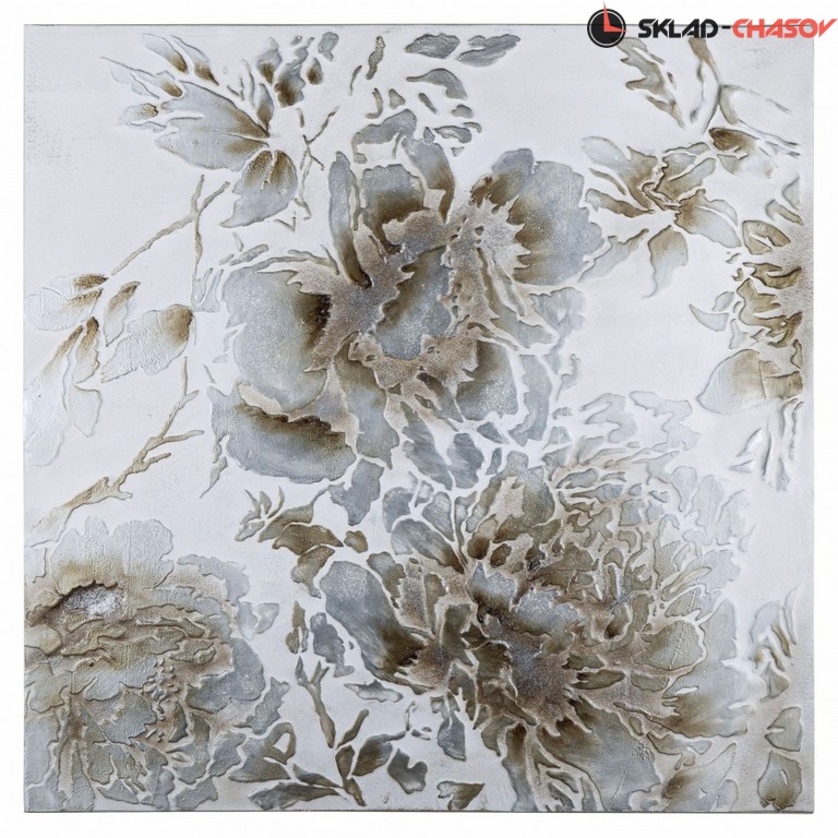 Фактурная картина в нежных пастельных тонах с цветочными мотивами. Размеры 100 x 100 x 3 см